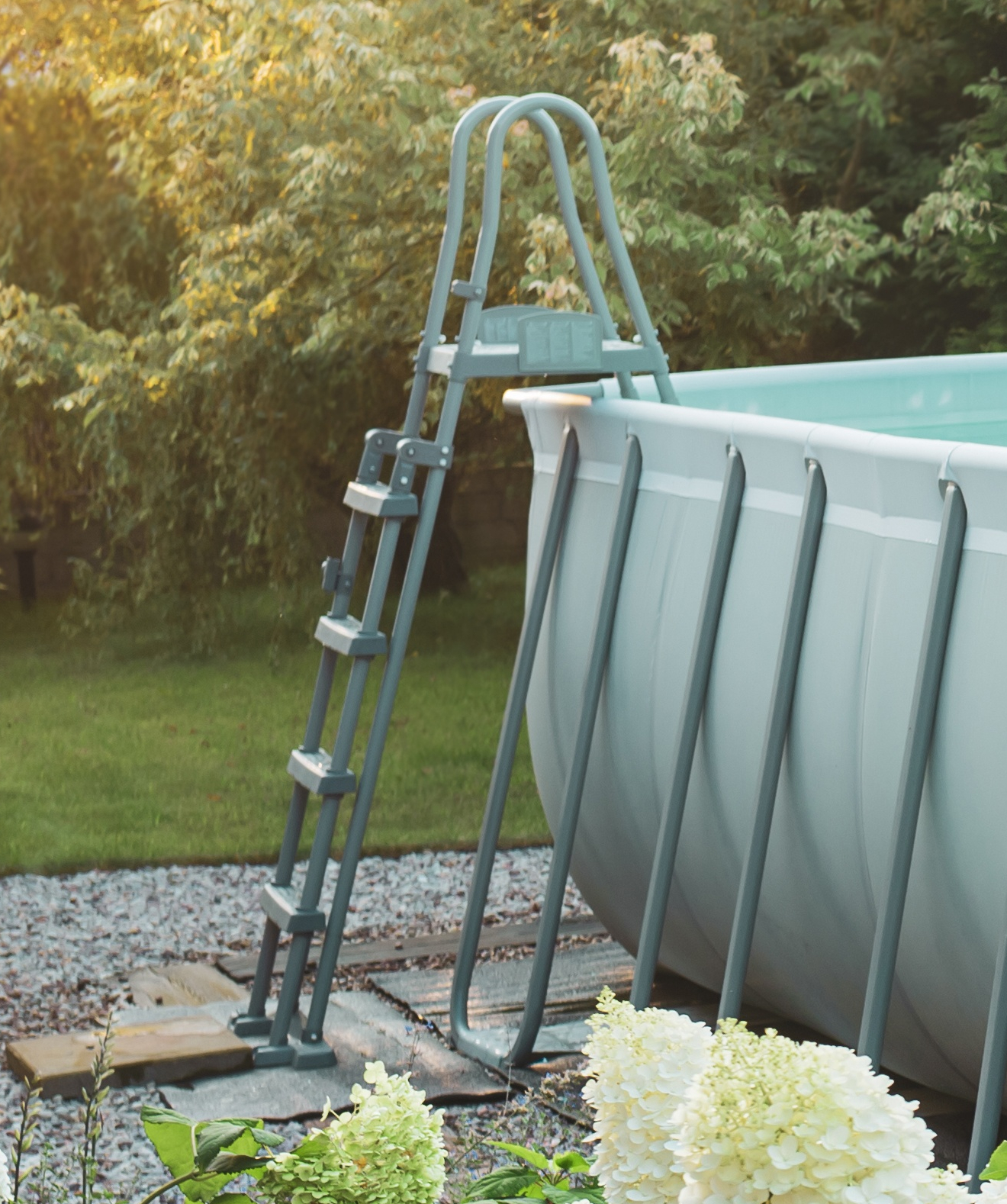 Ein Aufstellpool passt in fast jeden Garten, während ein eingelassener Pool mehr Fläche benötigt.